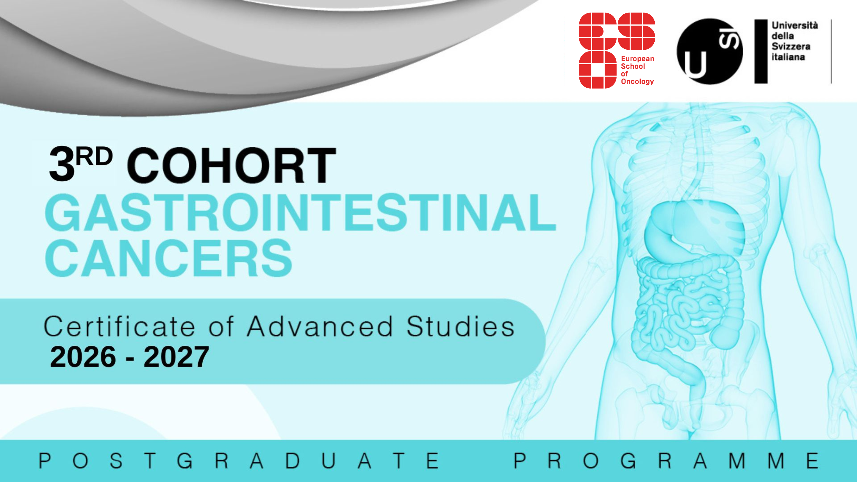 In keeping with the ESO mission, the cost of the Certificate of Advanced Studies in Gastro-intestinal programme is subsidized by the European School of Oncology (ESO).